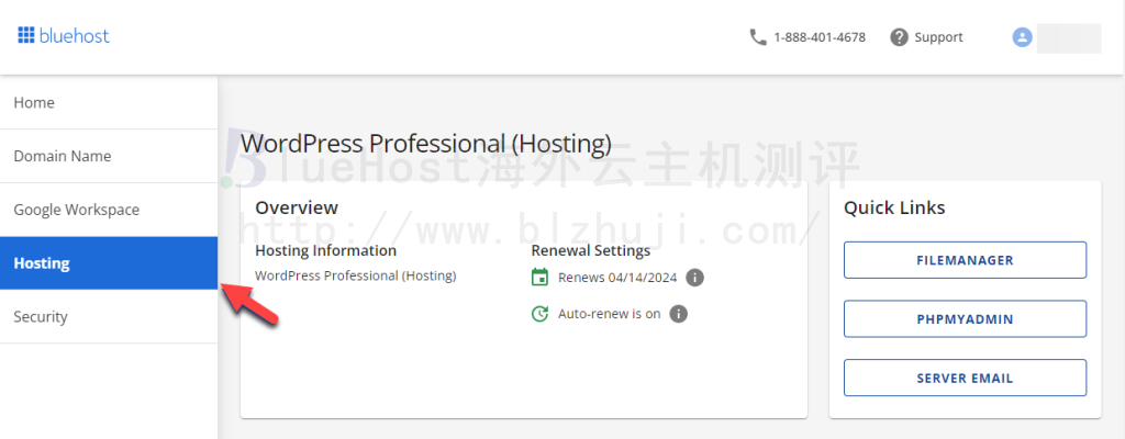 2、单击侧面导航菜单中的“Hosting”选项卡。